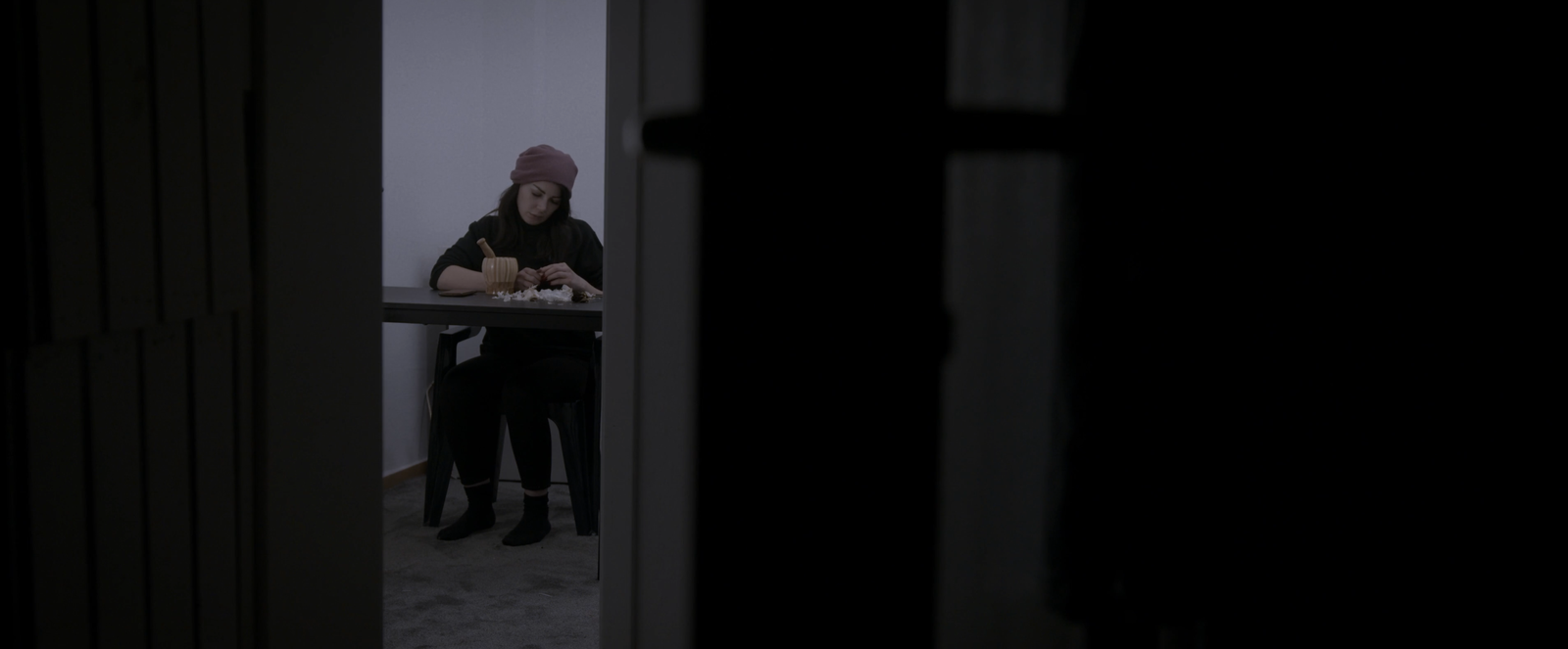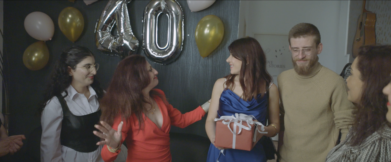مع بدء لحظات الاحتفال بعيد ميلاد سارة رستم، كان السرد البصري منسجمًا مع السرد الصوتي، حيث شجّعت الحضور على التعارف عند وصول ميريام سالم وزوجها كريم: «كلكم تعرّفوا على بعض». كما أن انتقال المشاهد في الحفل كان يقول الكثير دون حاجة إلى حوار مباشر. كانت سارة رستم موظفةً تتابع شؤون اللاجئين في ألمانيا، وفي الوقت ذاته مهاجرة، وهو ما شكّل الجسر النصي للبناء .الدرامي وتطور العلاقة مع ميريام سالم وزوجها كريم، اللذين كانا يبحثان عن منزل للاستقرار